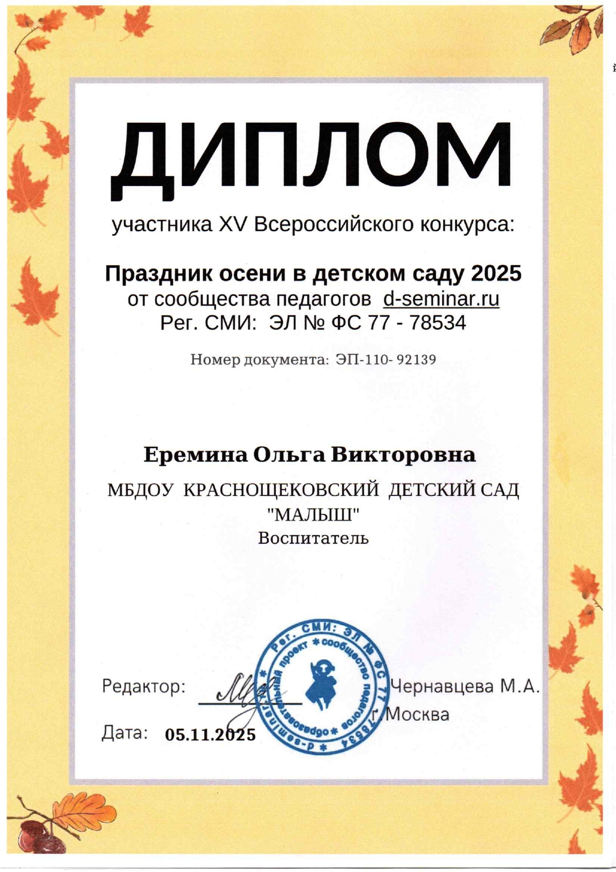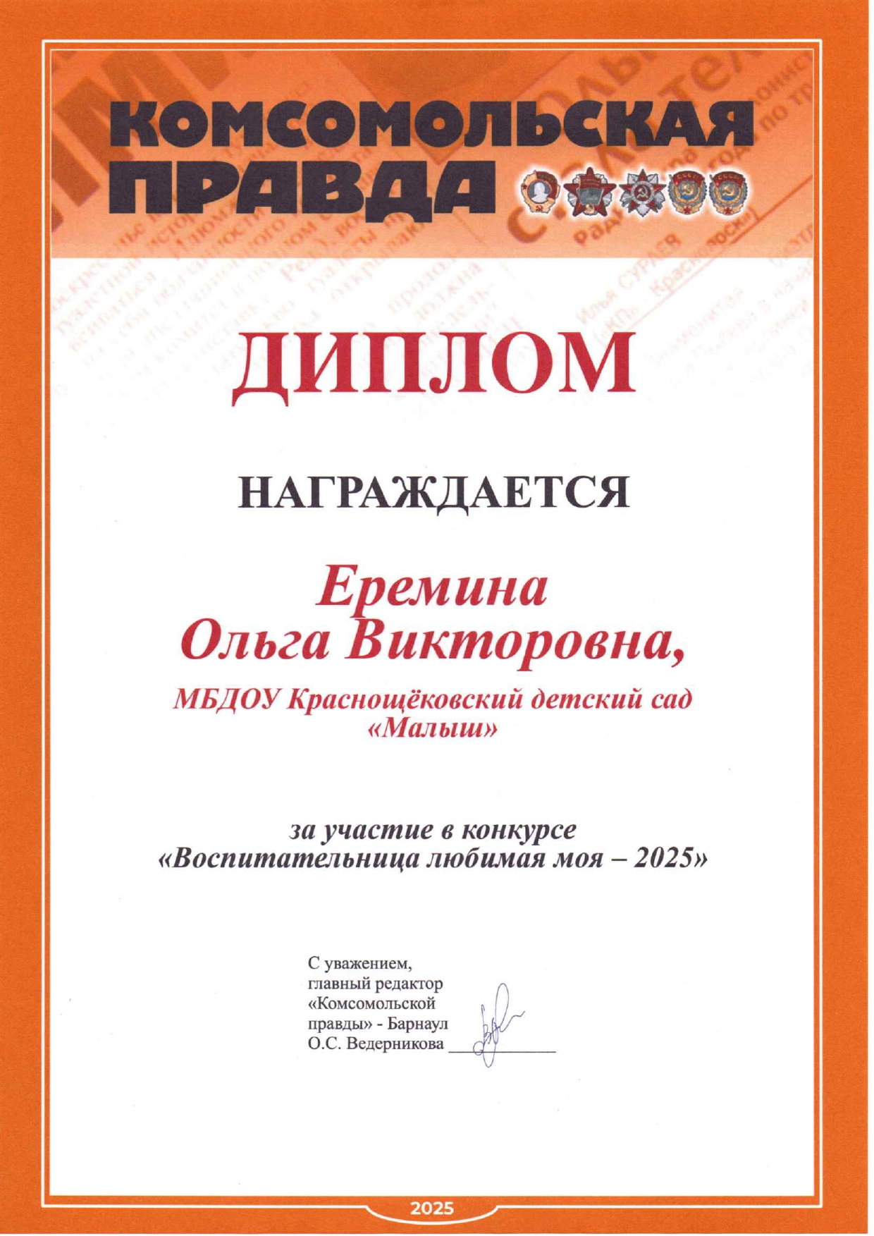 Еремина Ольга Викторовна