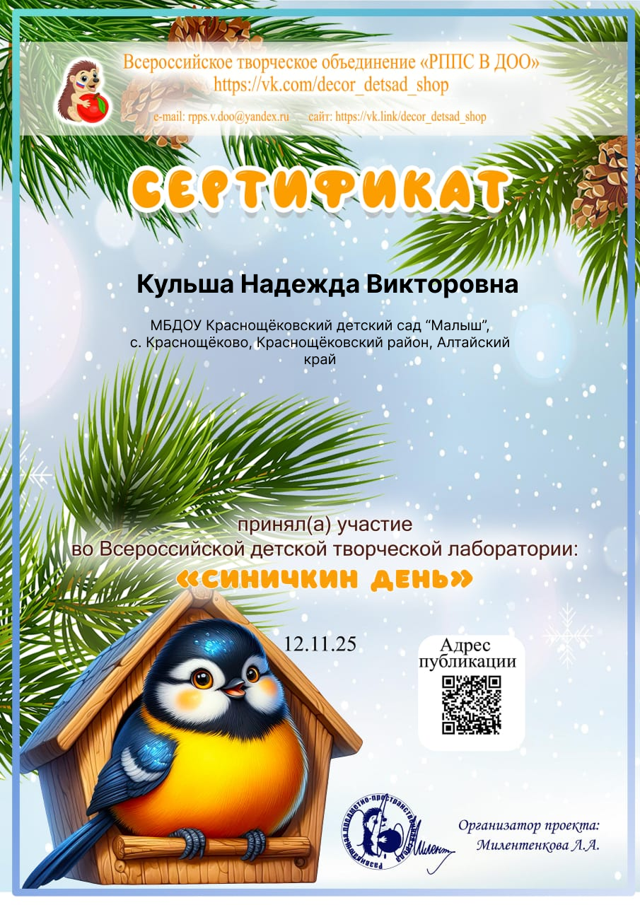 2. ФБУН «Новосибирский научно-исследовательский институт гигиены Роспотребнадзора «Основы здорового питания для дошкольников» — 15 часов, ноябрь, 2021 года.