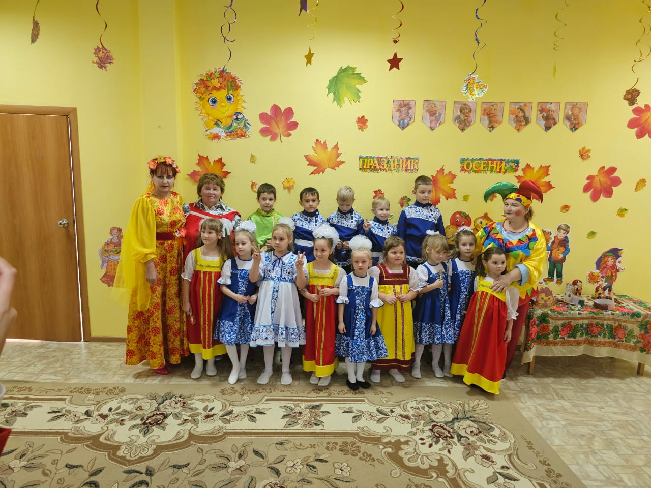 В подготовительной группе прошёл праздник осени, который был связан с народными традициями. Весёлая ярмарка со скоморохами и зазывалами, с народными играми и плясками. Дети познакомились с русскими традициями - ярмаркой, водили хороводы, играли в народные игры. Праздник был ярким, радостным, поднял настроение у детей и родителей!